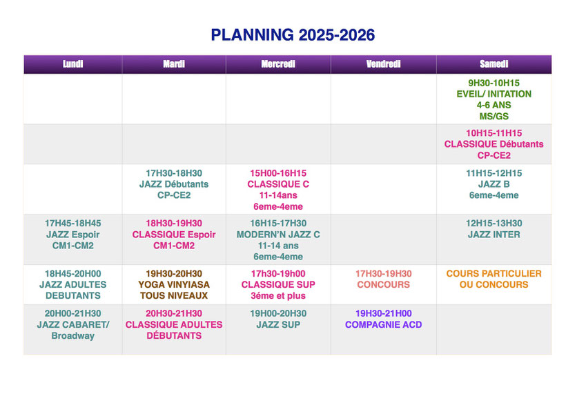 Ce planning est à titre d'information, il peut être modifié d'ici la rentrée de septembre